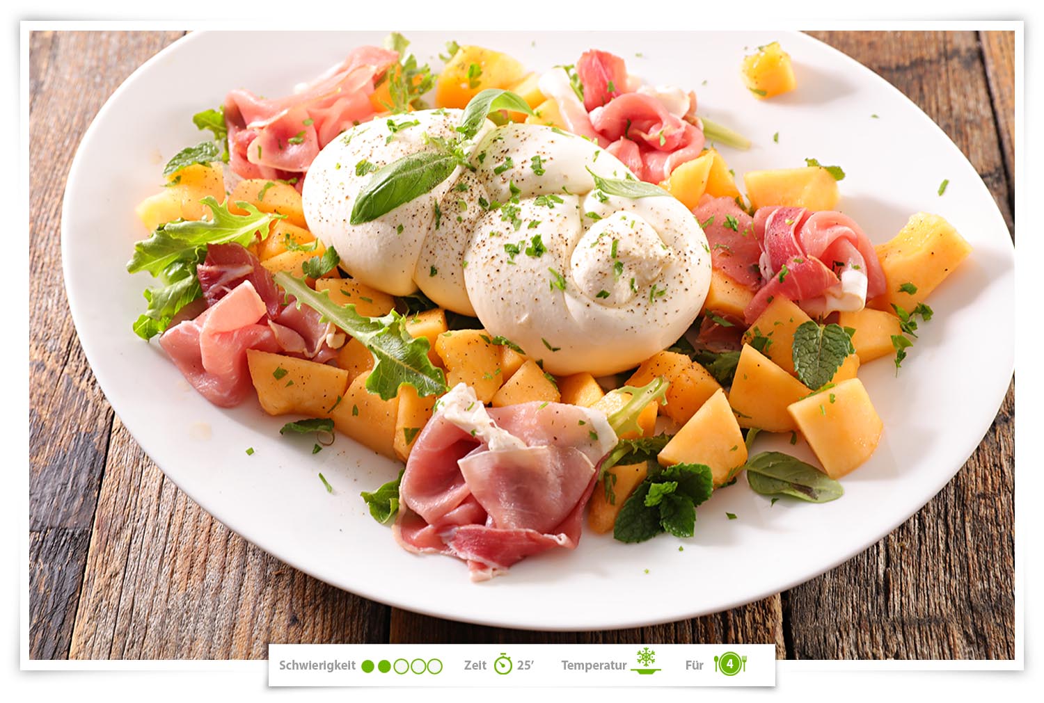 HONIGMELONENSALAT MIT SERRANO-SCHINKEN UND BURRATA