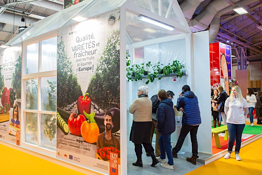 En primer lugar, el stand ha contado con un invernadero real, que contenía plantas de tomate, berenjena, pimiento, pepino y fresa, así como cajas de abejorros, imprescindibles en cualquier invernadero por su gran función polinizadora. Gracias a la presencia de amigos productores de las distintas AOP, así como la constante proyección de nuestro video de programa sobre los métodos de producción, los visitantes pudieron aprender todo lo que sucede en un invernadero, y la importancia de este método de producción europeo para alimentar a toda Europa de una manera sana, sostenible y accesible.