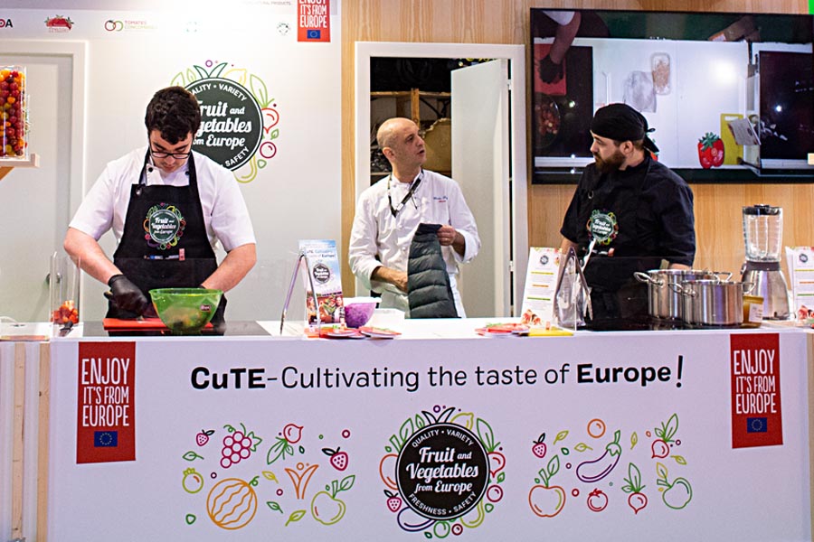 Por otro lado, otro objetivo principal de la presencia de CuTE en SIA era que el público pudiese degustar de primera mano la calidad y variedad de los productos europeos producidos en invernadero, y que mejor manera para conseguirlo que mediante Showcookings! Durante prácticamente todo el día, dos magníficos chefs deleitaron a los asistentes con fantásticas recetas basadas en productos de invernadero, como por ejemplo un delicioso Tartar de Pepino, piñones y menta, o unas maravillosas Fresas Gariguette bañadas en chocolate para los más golosos. Todo un lujo que sin duda no dejó indiferente a nadie!