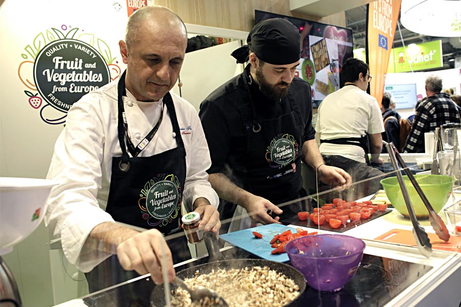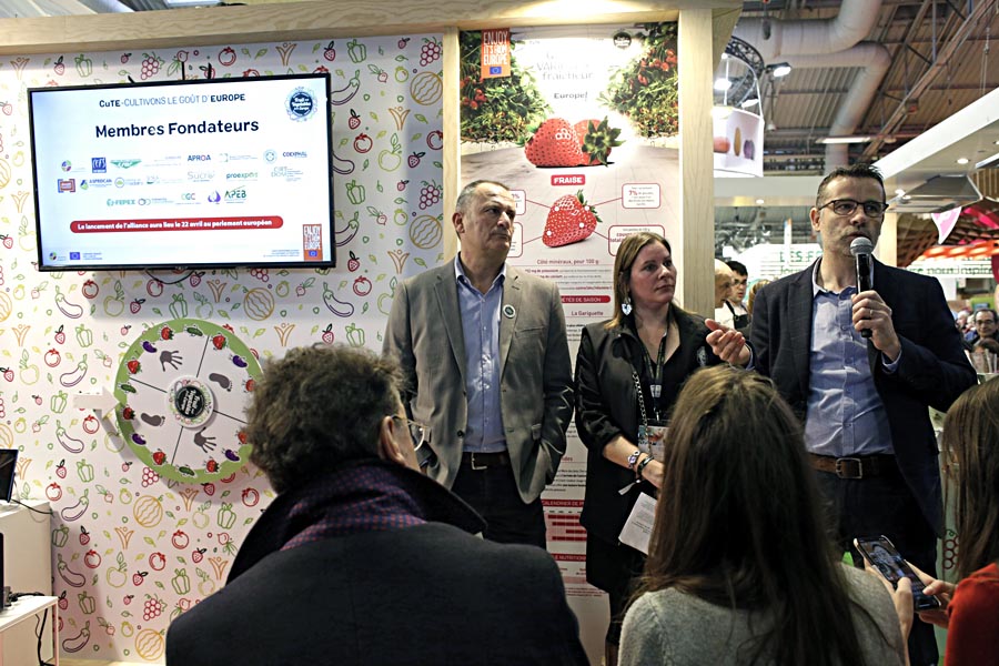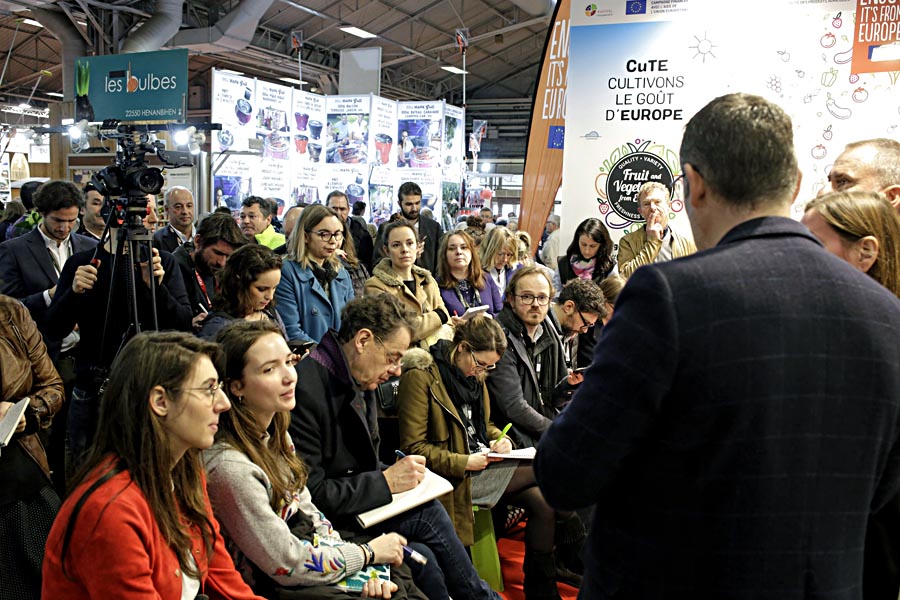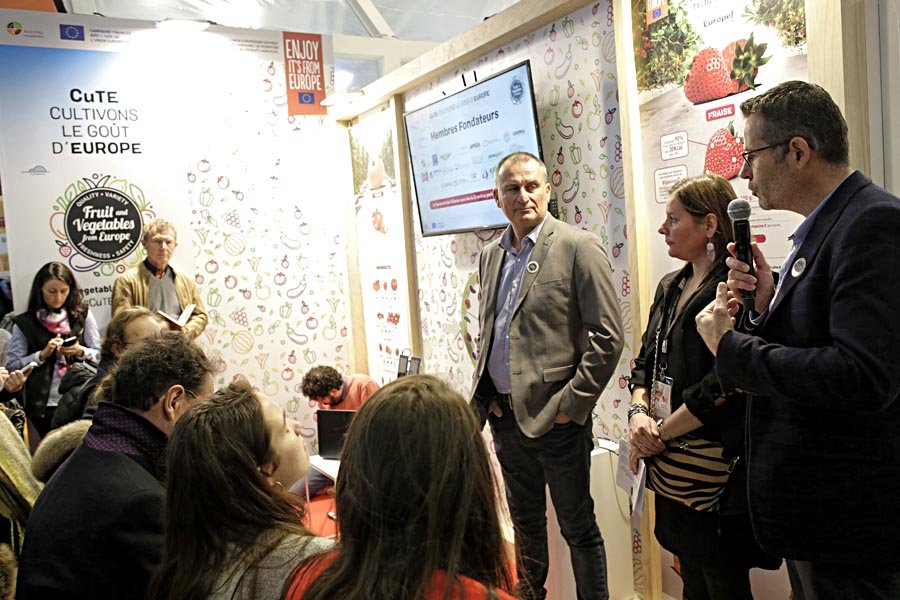Además de todas estas actividades diarias con las que contó el stand, cabe destacar la Rueda de Prensa de inauguración del stand que tuvo lugar el Lunes 24, en la que el Sr. Laurent Bergé, (presidente de la AOP Tomates et Concombres), el Sr. Xavier Mas (Presidente de la AOP Fraise de France) y la Sra. Alba Ridao-Bouloumié (Secretaria General de EUCOFEL) comunicaron a los periodistas los temas de mayor actualidad sobre el programa y el sector, tales como los resultados del primer año de CuTE y el planteamiento para el año 2 del programa, los primeros resultados del primer Eurobarometro llevado a cabo por EUCOFEL, y por último, ADEA, la Alianza para la Defensa de la Agricultura Europea.