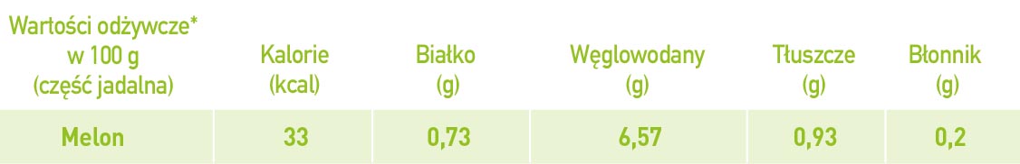 TABELA WARTOŚCI ODŻYWCZYCH MELON