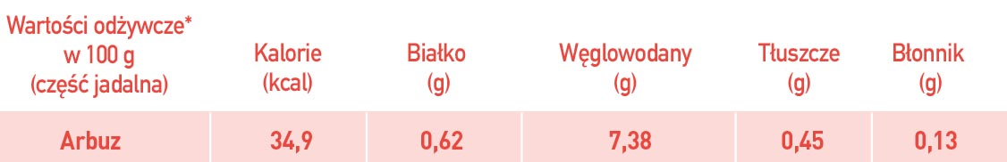 TABELA WARTOŚCI ODŻYWCZYCH ARBUZ